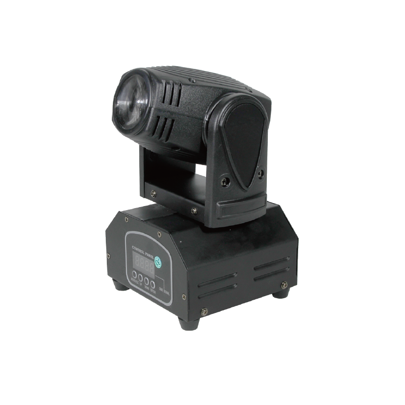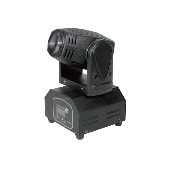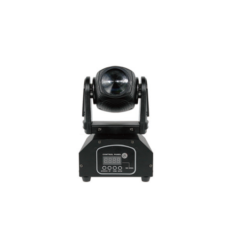 BEAM-M30A is a super mini, fast and quiet moving head light. It provide extremely clear and even spot coverage. It produces very high light output, through a specific 8° optic system. There are 4 colors R, G, B, W. It built-in master/slave, sound active, automatic, DMX512.